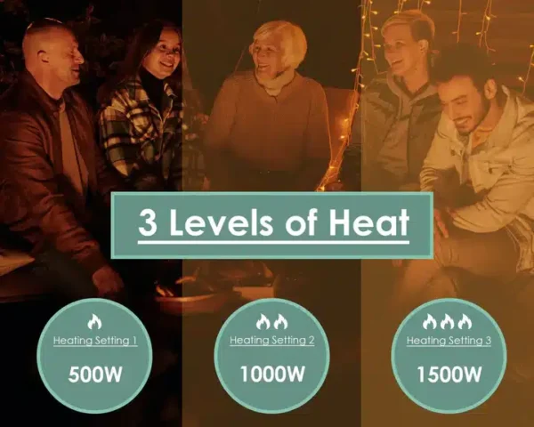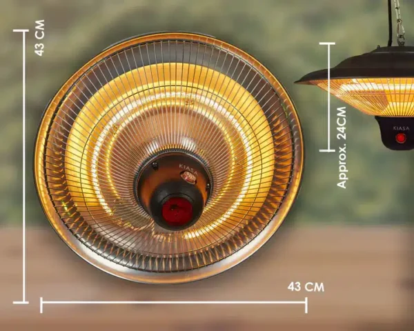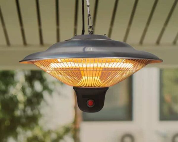 This hanging gazebo heater is small and compact but extremely powerful with a power wattage of 1500W. The length of the hanging chain is 50cm, but this can be adjusted to suit your needs. The hook at the end can be attached anywhere along the chain. It is also a portable electric patio heater to beat the chilly weather wherever you are.