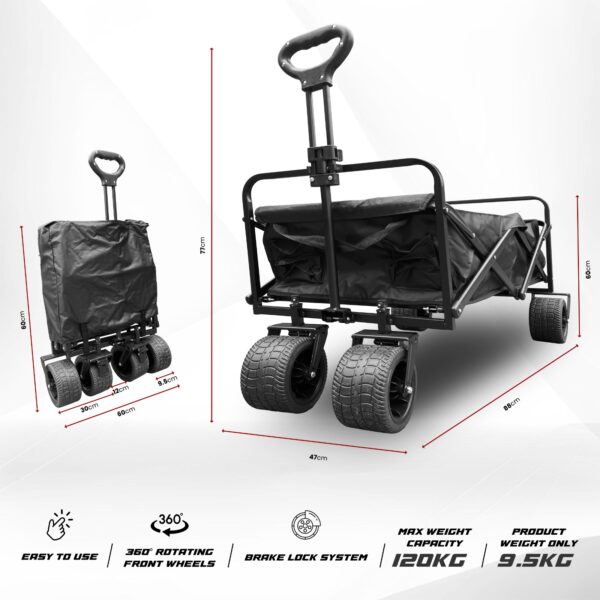 Whether it is going to a beach, camping spot, a festival, or just that garden, that portable utility wagon is a one-stop solution for easy transportation. Convenient and strong, it pairs a lightweight frame with heavy-duty performance. The portable trolley offers excellent mobility, safe setting, and solid support wherever your adventures take you, thanks to the clever fold mechanism, rugged construction, and user-friendly design.