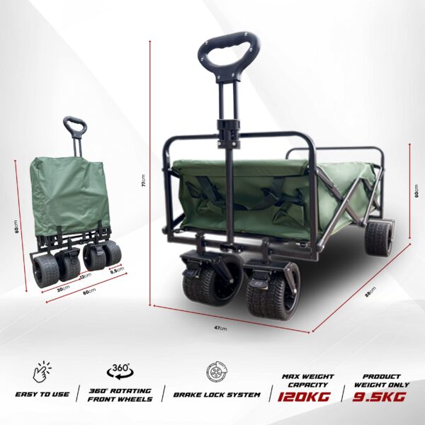 Camping Trolley 120kg by Fern London – Heavy Duty Foldable Festival Cart with Adjustable Handle, Outdoor Utility Wagon for Beach, Fishing, Picnic, Shopping & Gardening