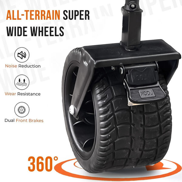 >360° Rotating Front Wheels: Enhanced manoeuvrability allows smooth turns and better control on tight paths.
