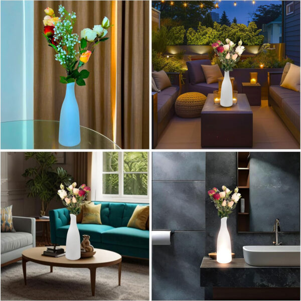 LED Glow Flower Vase – USB & Battery Powered Light-Up Plastic Vase, USB Cable Included, 6 Elegant Designs – Modern Conical Shape, Table Decor